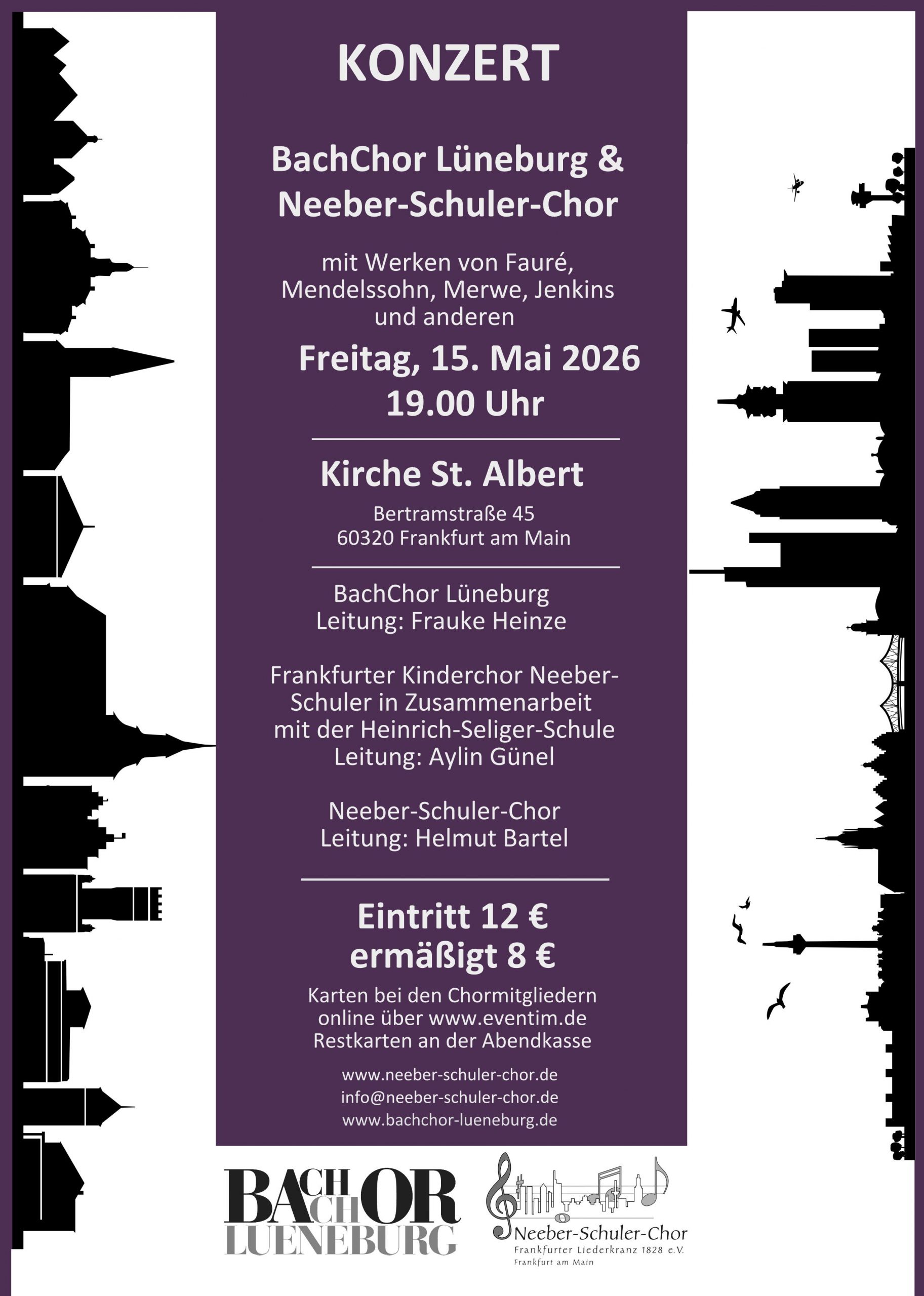 Eintrittskarten sind direkt über den Chor, online auf www.eventim.de und Restkarten an der Abendkasse erhältlich. Wir freuen uns auf viele Zuhörer!